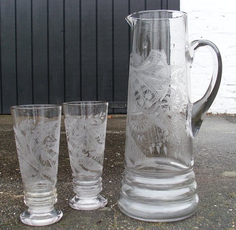 Stor tysk ølkande med tilhørende glas(2stk)