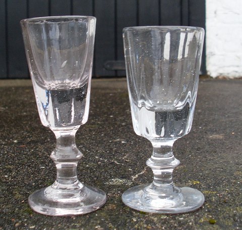 1800tals vinglas, riflet kumme med tyk bund på stilk med kanp.