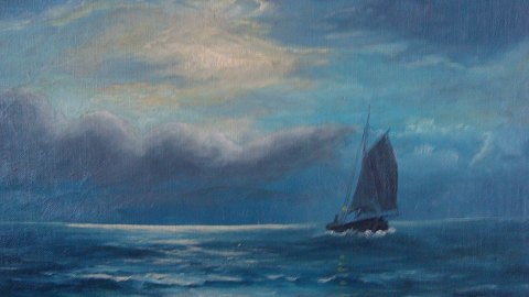 maleri af Reinhard Johansson - Måneskin på Øresund.