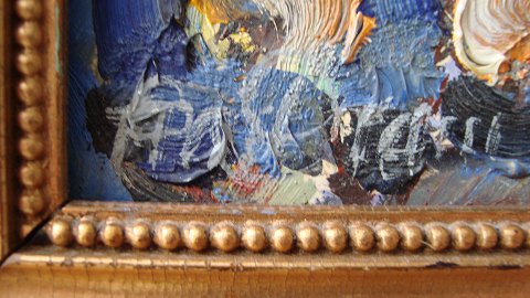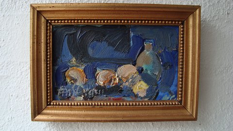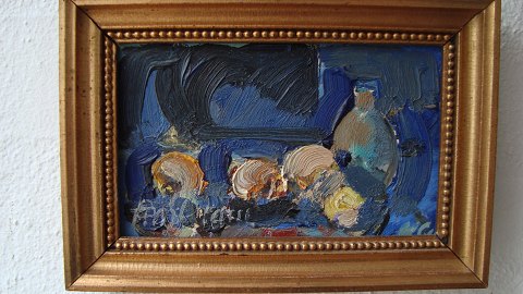 Maleri af Karl Gram - Opstilling med krukke og frugt.