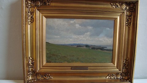 Maleri af Poul Steffensen - Landskab med fjord i baggrunden.