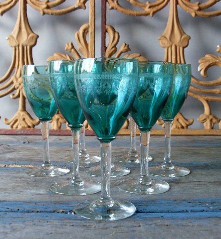 Smukke hvidvinsglas med smaragd grøn kumme.