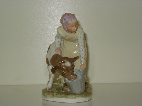 Royal Copenhagen Overglaze Figurine, Girl with Calf