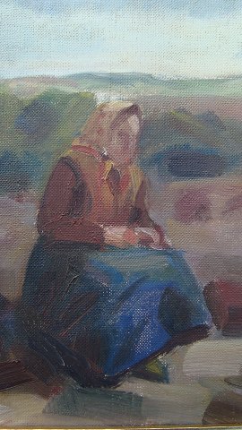 Hedeparti med gående kvinde.