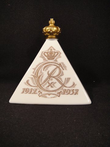 Bing & Grøndahl pyramide afsluttet med guldstafferet krone fra Chr. X's jubilæum 1912-1937