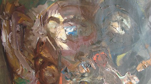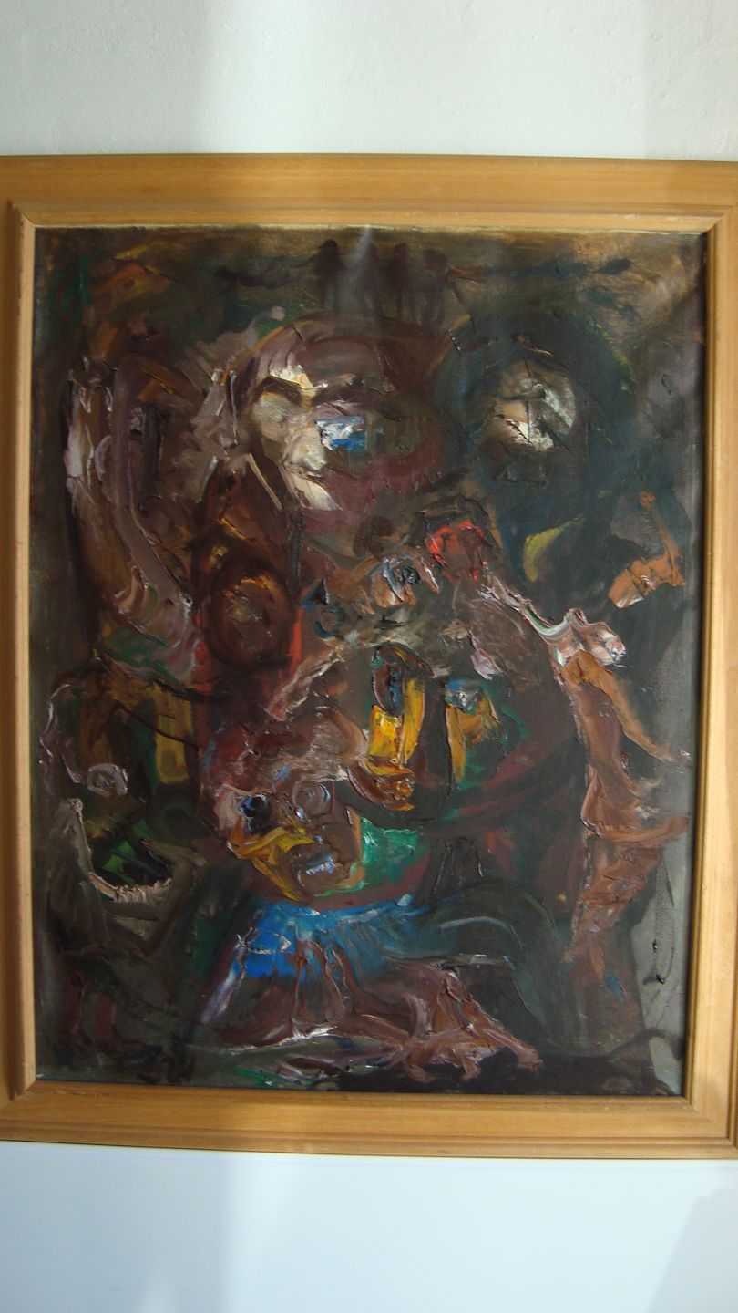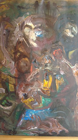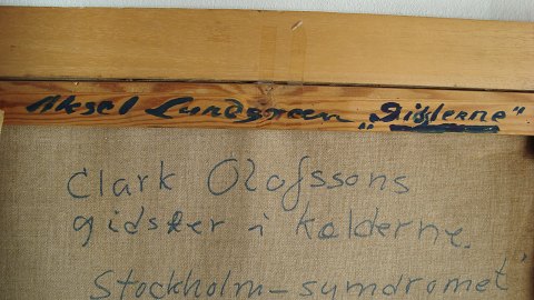 Bagpå blindramme - Aksel Lundgreen "Gidslerne" 1974.