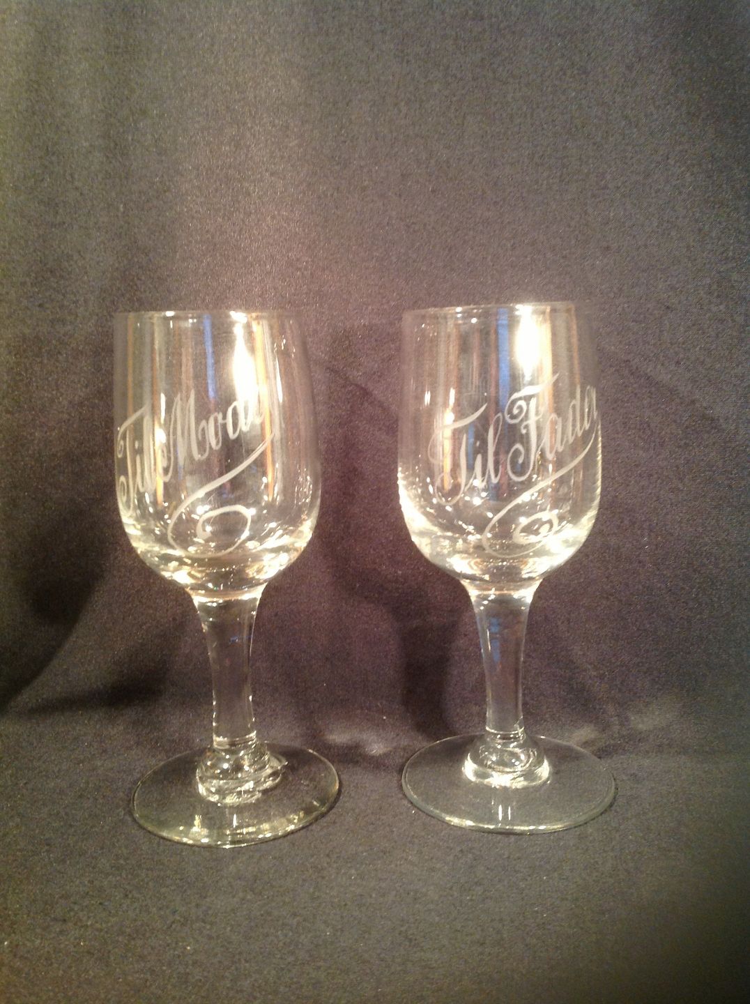 Afsprængt kumme på glat stilk. på kummen med gravering.