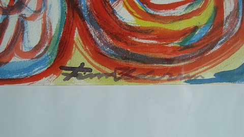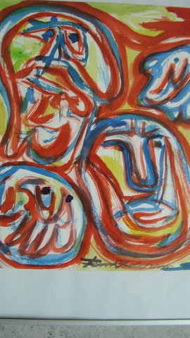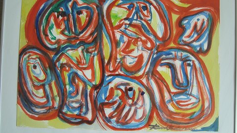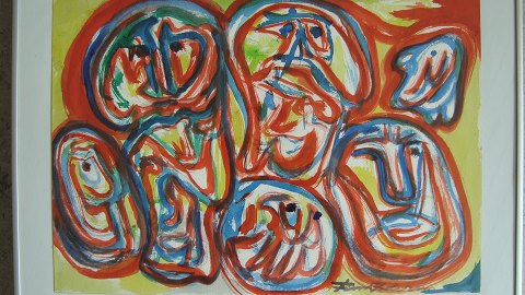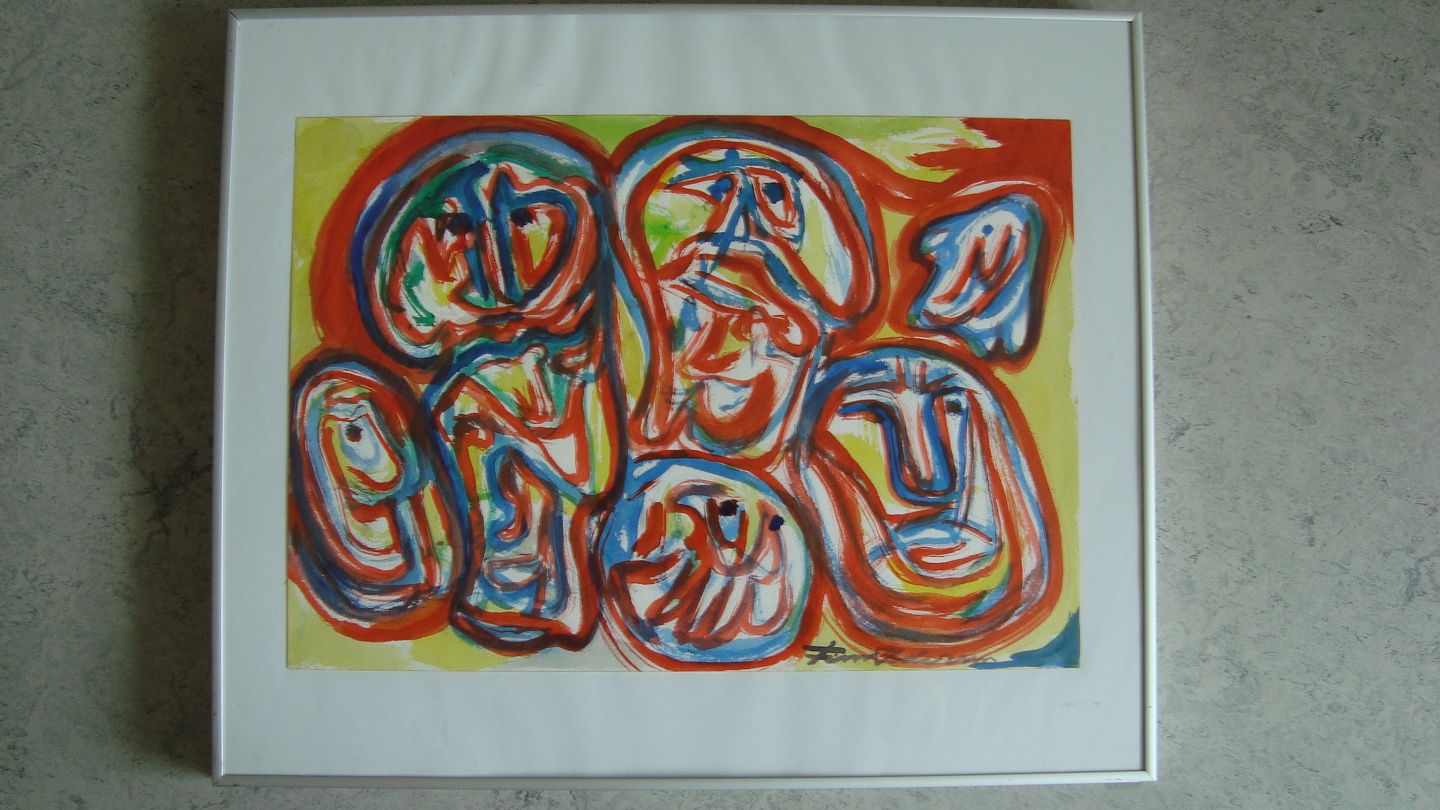 Akvarel af Finn Pedersen - Komposition med ansigter.