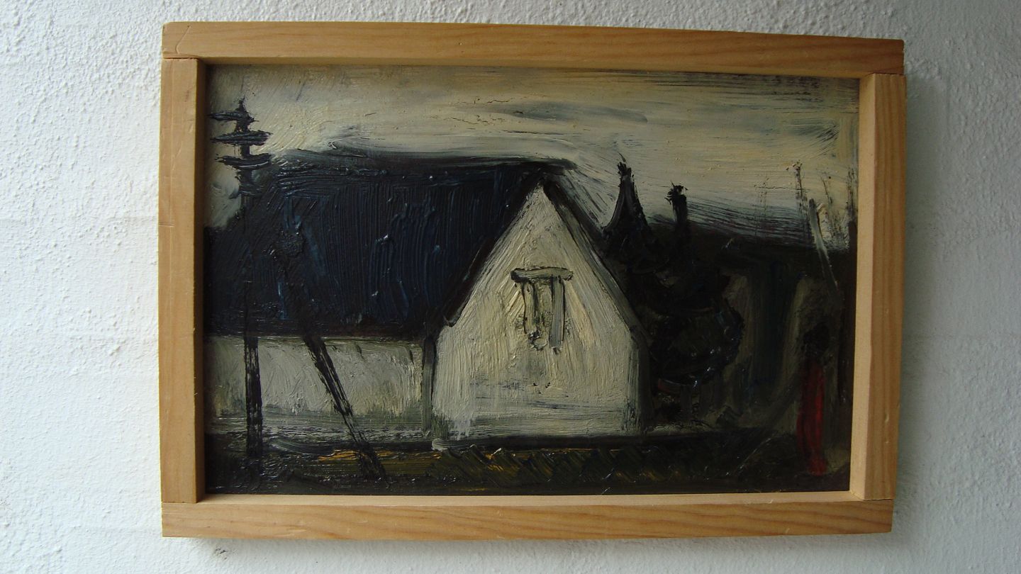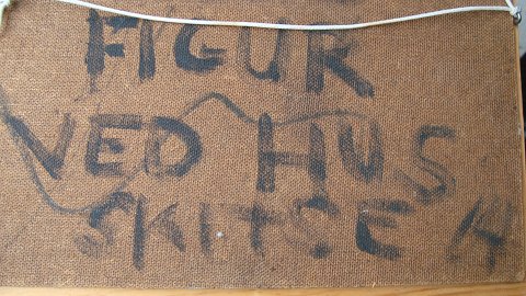 Bagpå - "Figur ved hus - skitse 64" samt signatur - P.B.S.