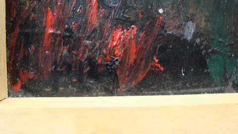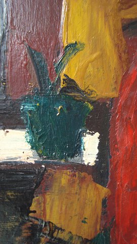 Maleri af Peder Brøndum Sørensen - Person ved vindueskarm med kaktus.
