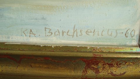 Betegnet bagpå med label K.A. Borchsenius - Gule blomster i aftenlys - 60.