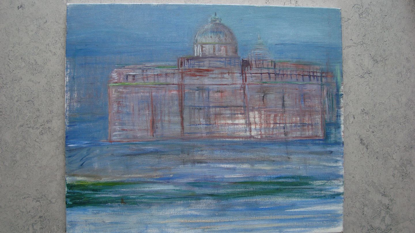 Komposition med klassiske bygninger med kupler.