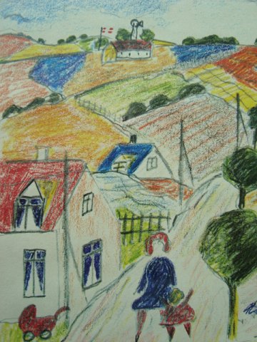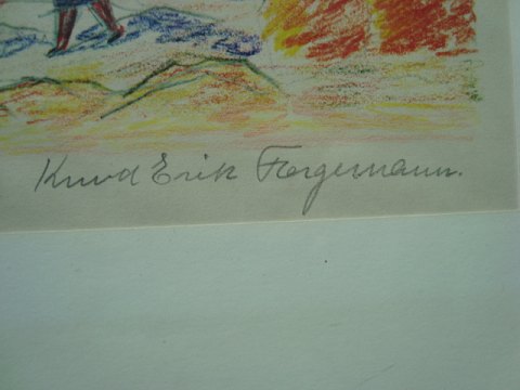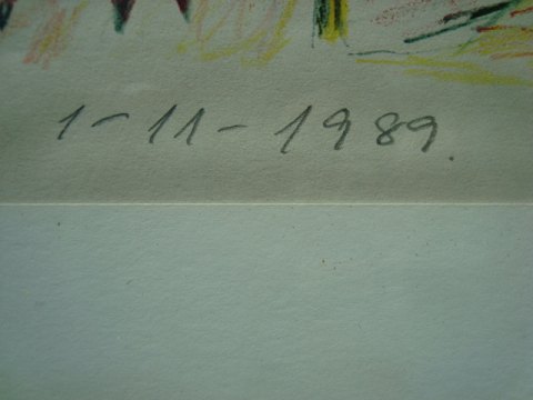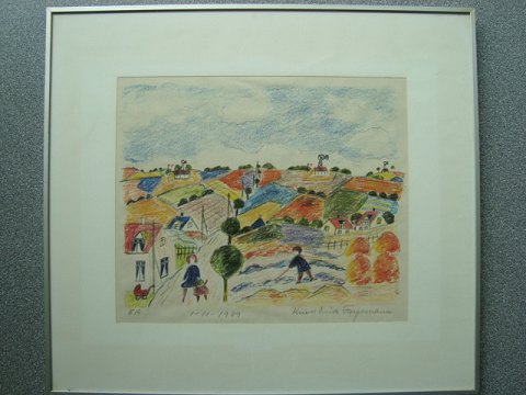 Tryk af Knud Erik Færgemann 1989 - Bymotiv med personer.