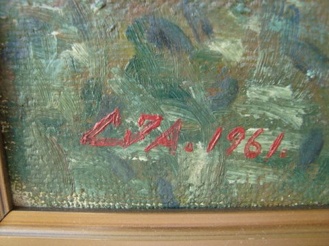 Maleri af C.J. Andersen - Kystparti fra Bornholm med klipper 1961.