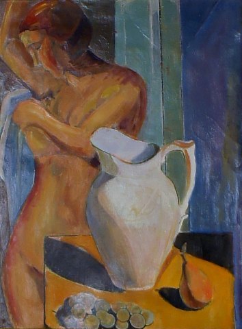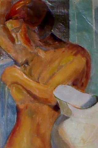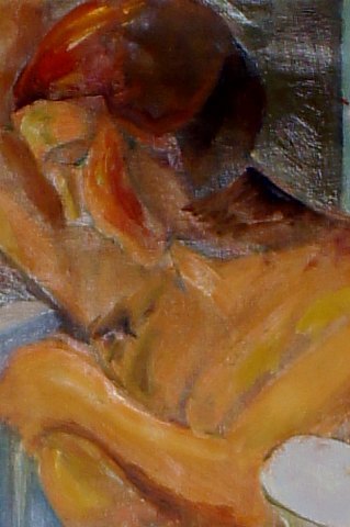 Oil on board, portrait of naked woman, unsigned, unknown artist.