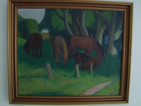 Bagpå blindramme med håndskrift - Eiler Løndal - Landskab med heste.
