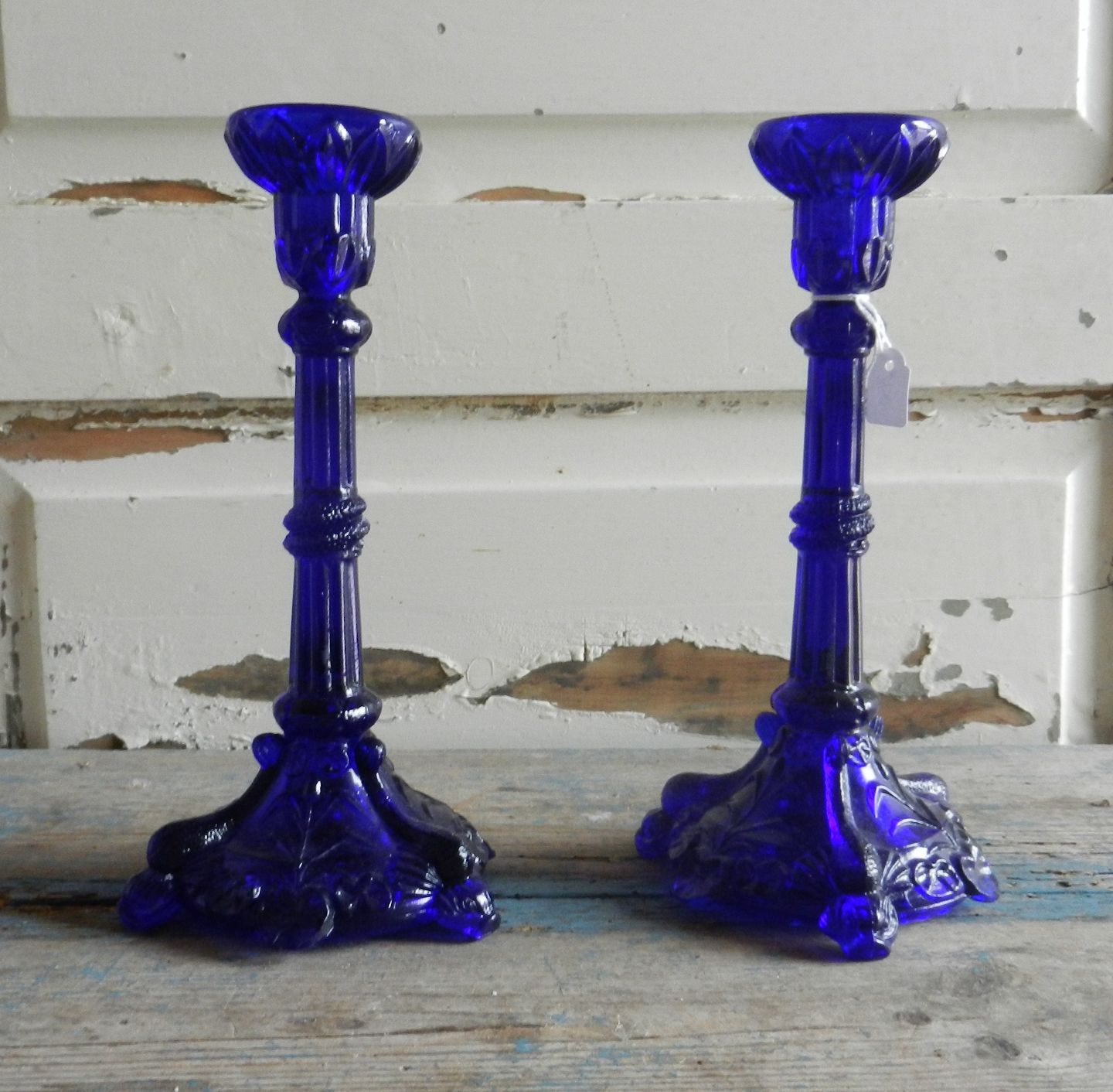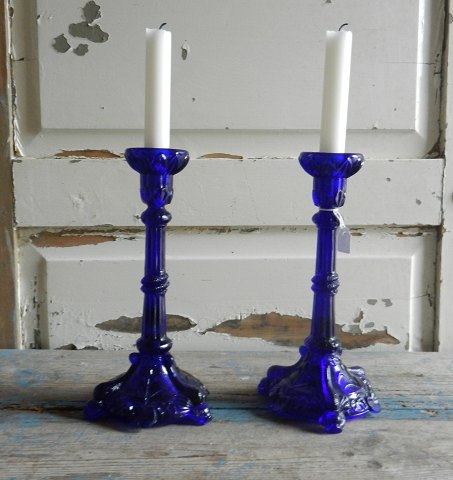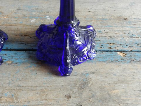 Unikke franske 1800tals stager af presset blåt glas
