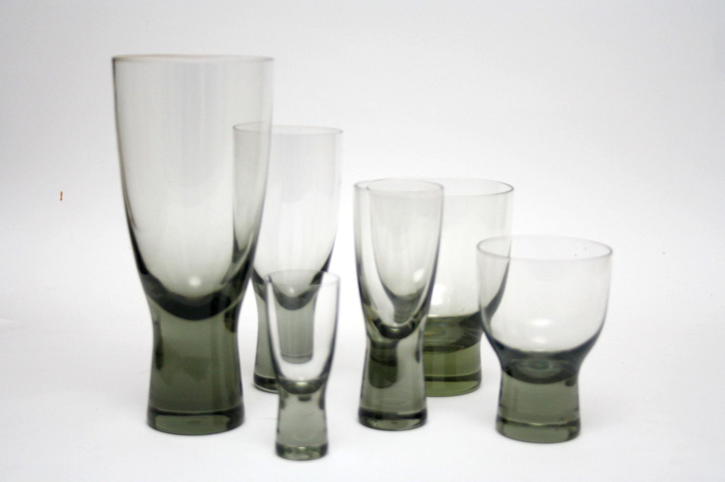 Holmegaard glasværk 1955-90, Canada, smoke glasserie. Designet af Per Lütken. Dette er et oversigtsbillede, så man kan se forskellene på glassene.