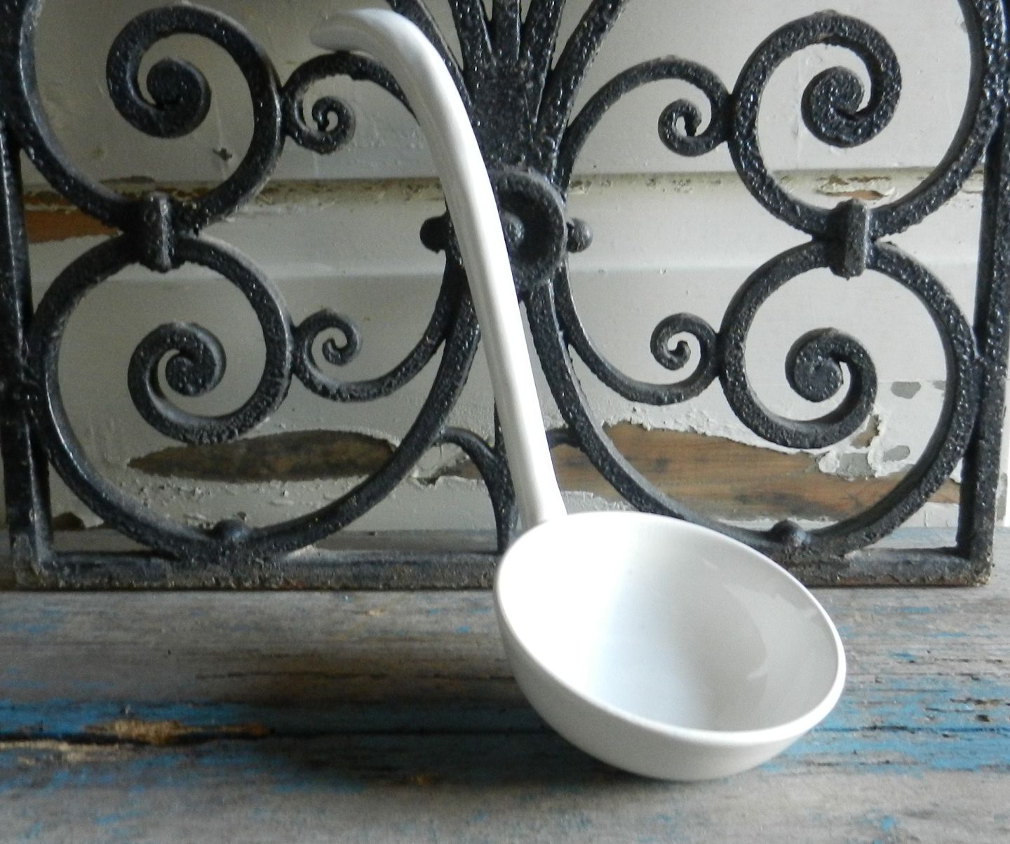 Stor cremefarvet op-øser ske, perfekt til en stor terrin.