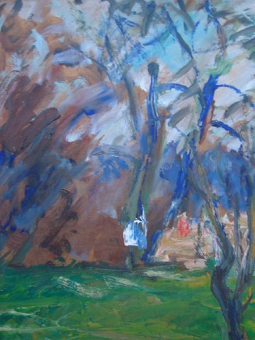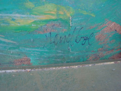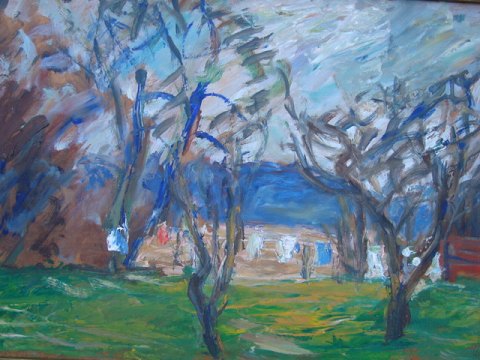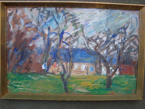 Maleri af Svend Aage Rendboe - Haveparti med hus.