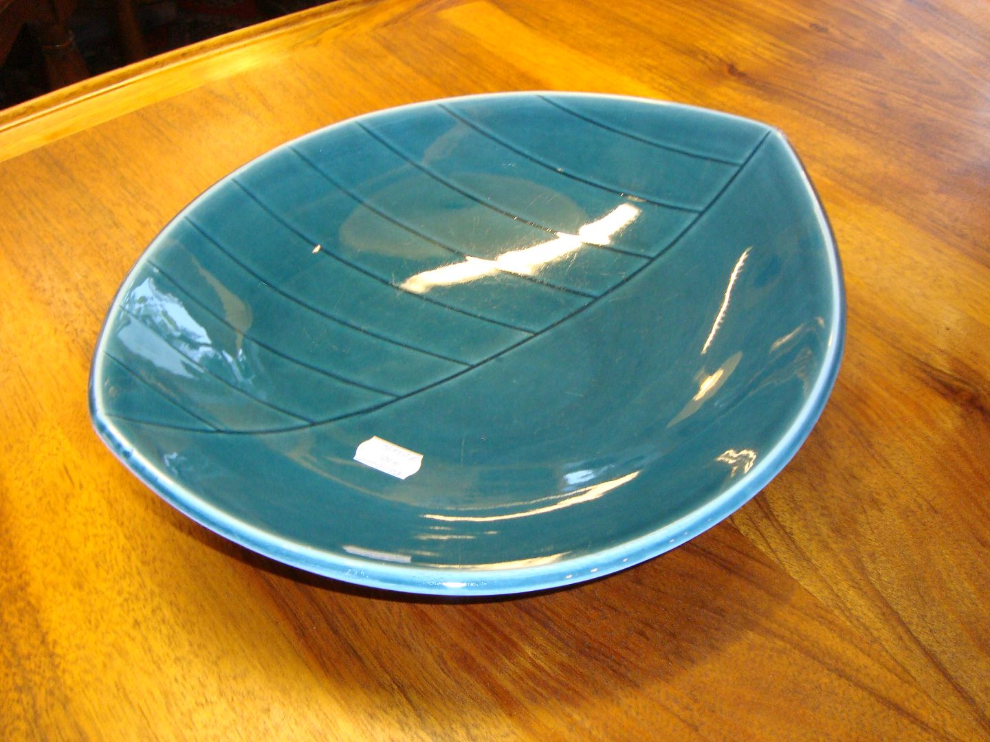 Flot bordfad fra Rørstrand i mørk grøn glasur, mål 32 / 28 cm