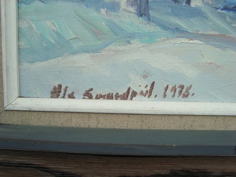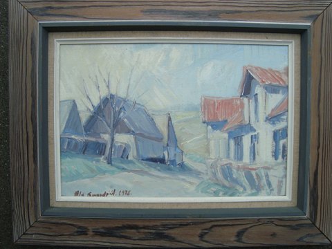 Maleri af Ole Sværdpiil 1978 - Landsbygade, vinter.