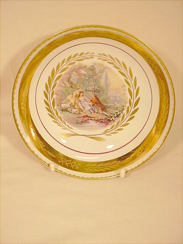 Tallerken med romantisk motiv og guldkant