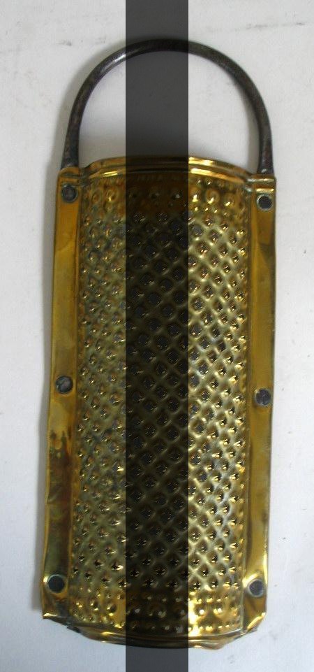 Grater in brass, Denmark, 19th century. With iron frame. L .: 28 cm. Beautiful condition.
