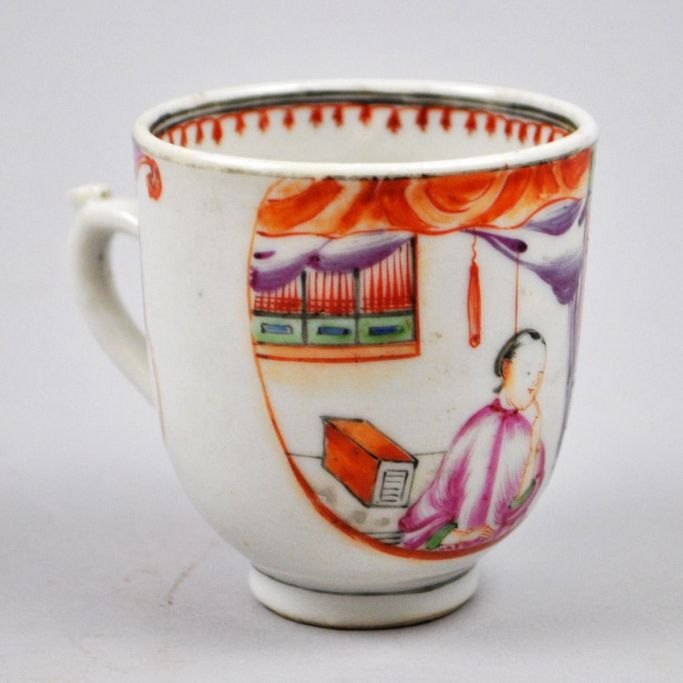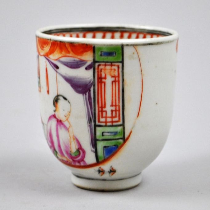 Chinese cup in porcelain, with figurines in mandarin porcelain, China Qianlong (1736 - 1795). With handle, H: 7 cm. With small cracks.