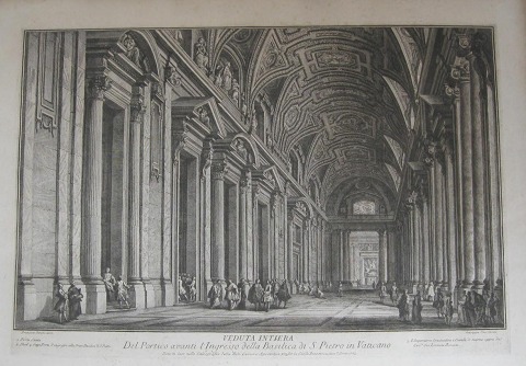 Vasi, Guiseppe (18. årh. ) Italien: Parti fra San Piedro (Peterskirken)in Vaticano, Rom. Kobberstik. 1765. 56 x 76 cm.