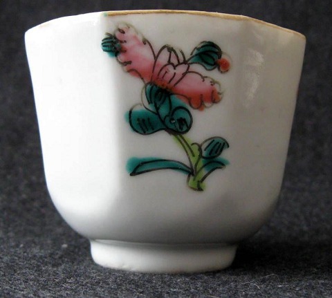 Kinesisk thekop, 19. årh. 8-kantet. Famille rose, Stemplet. H.: 5,5 cm.