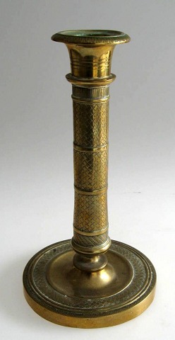 Fransk empirestage i messing, 19. årh. Rund fod dekoreret med akantusblade og stamme med geometriske mønstre. H.: 19,5 cm.