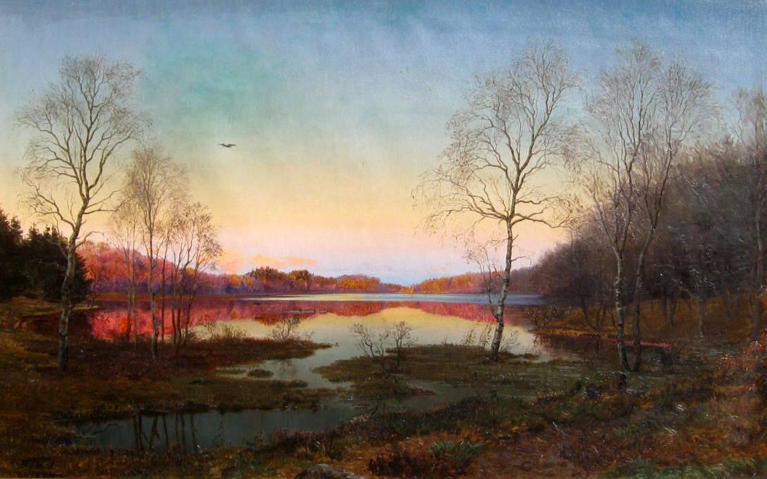 Fischer, Hans (1849 - 1886) Danmark: aftensteming ved Store Grib Sø.