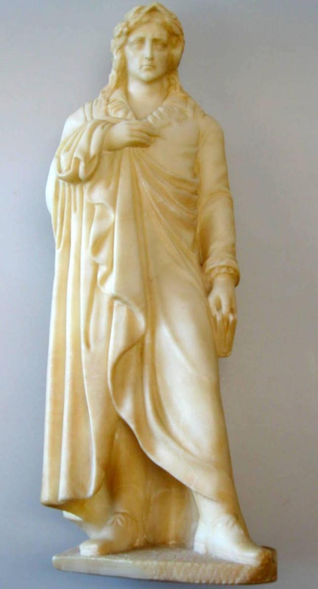 Ubekendt kunstner (19. årh.) En poet - antagelig Lord Byron. Iført klassisk dragt med krans. Stående med en bog. H.: 37,5 cm. Skulptur i alabast.