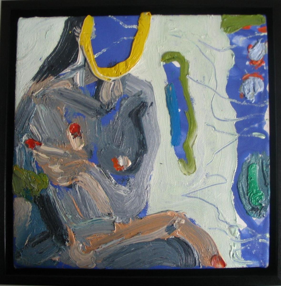 Bredtved, Michael (1959- ) Danmark: Supermodel. Olie på lærred/træ. Signeret på bagsiden.: Bredtved 05. 20 x 20 cm. Med sort svæveramme.