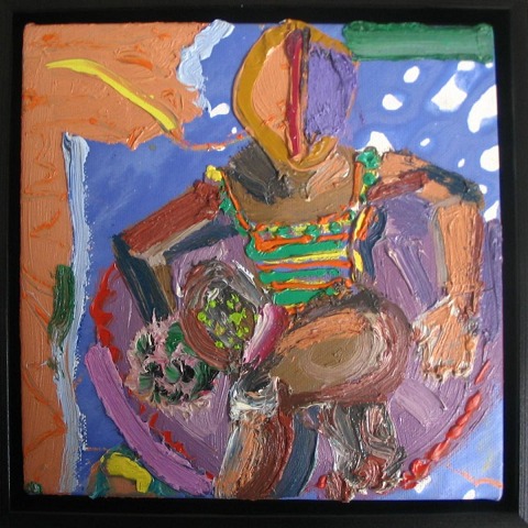 Bredtved, Michael (1959) Denmark: Supermodel 3. Oil on canvas / wood. Signed on the back .: Bredtved 05. 20 x 20 cm.