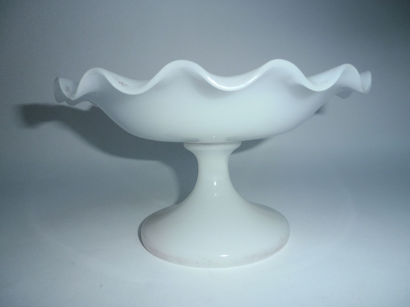 Mat hvidt opaline fad m. bølget kant, Frankrig ca. 1880.