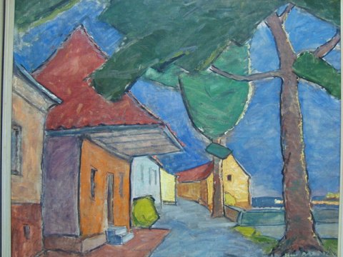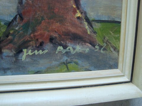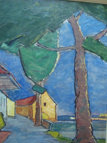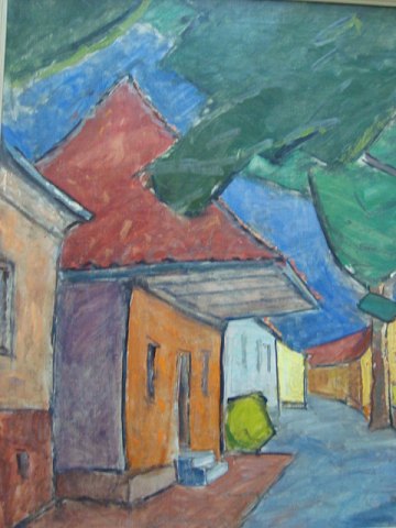 Maleri af Jens Aabo - Bymotiv fra Bornholm 1952.