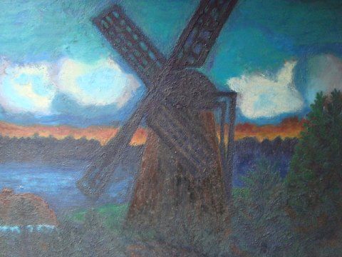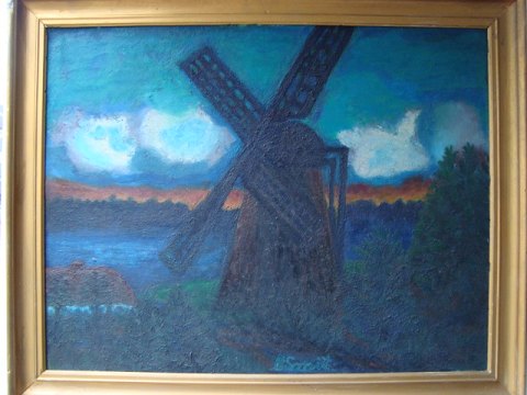 Maleri af Bruno Schmidt - Mølle 1967.