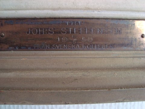 På ramme sølvplade med navnet Johs. Steffensen 13/6 1950.
