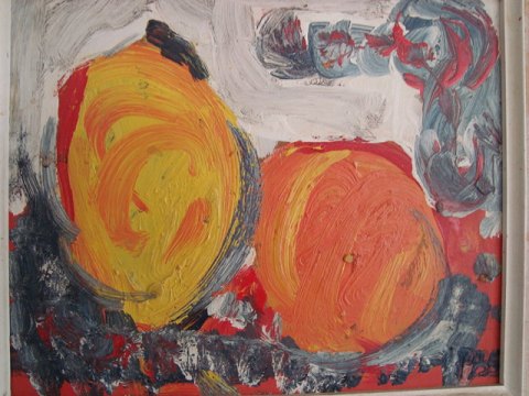 Maleri af Peder Brøndum Sørensen - Opstilling med appelsin og citron.