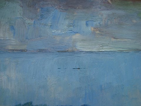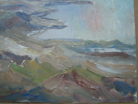 Maleri af Svend Berthelsen Stenvig - Udsigt mod Sønderho, Fanø 1949.