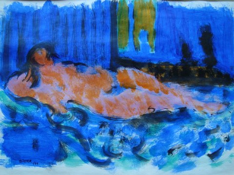 Akvarel af Henrik Buster Bruun 1974 - Liggende Venus.