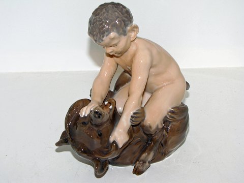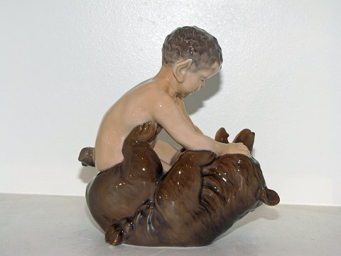 Royal Copenhagen figur, pan (faun) med bjørn.