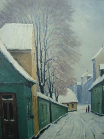 Vinterparti fra Skolegades Vandgyde - sidegade til daværende Skolegade i Aalborg (Nuværende gadenavn er efter 1939 - Vingårdsgade).