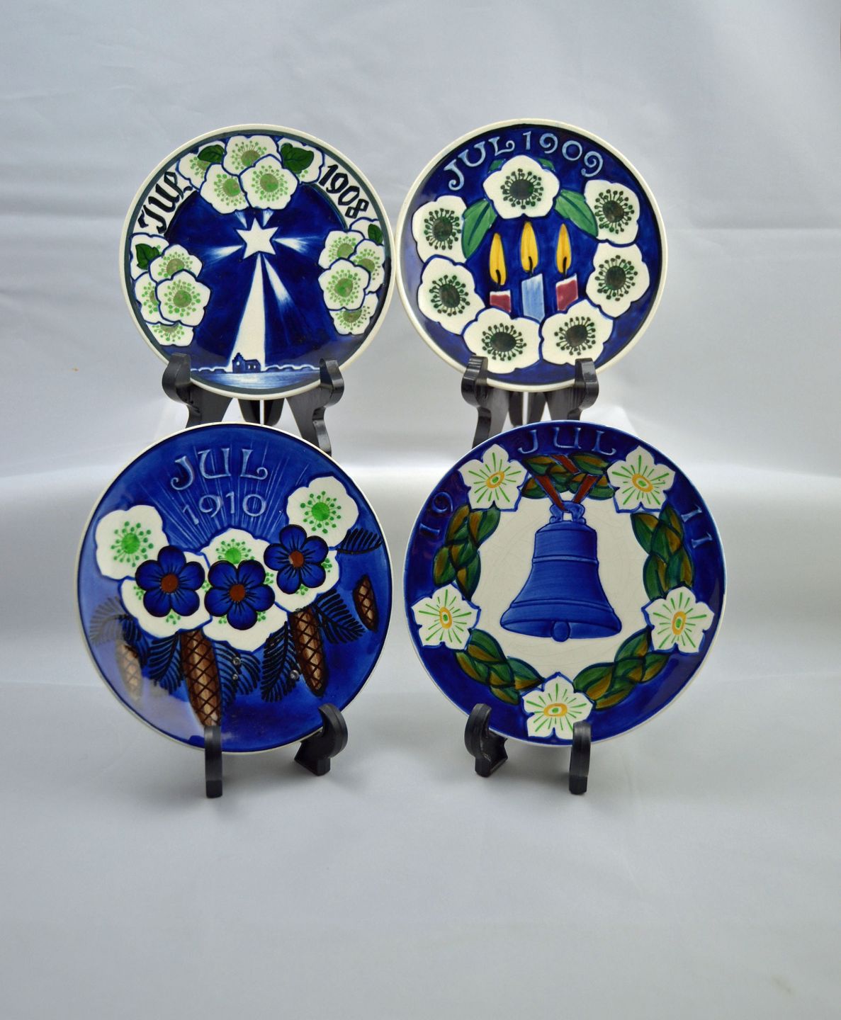 Juleplatter fra år 1908, 1909, 1910 og 1911 fra Aluminia.