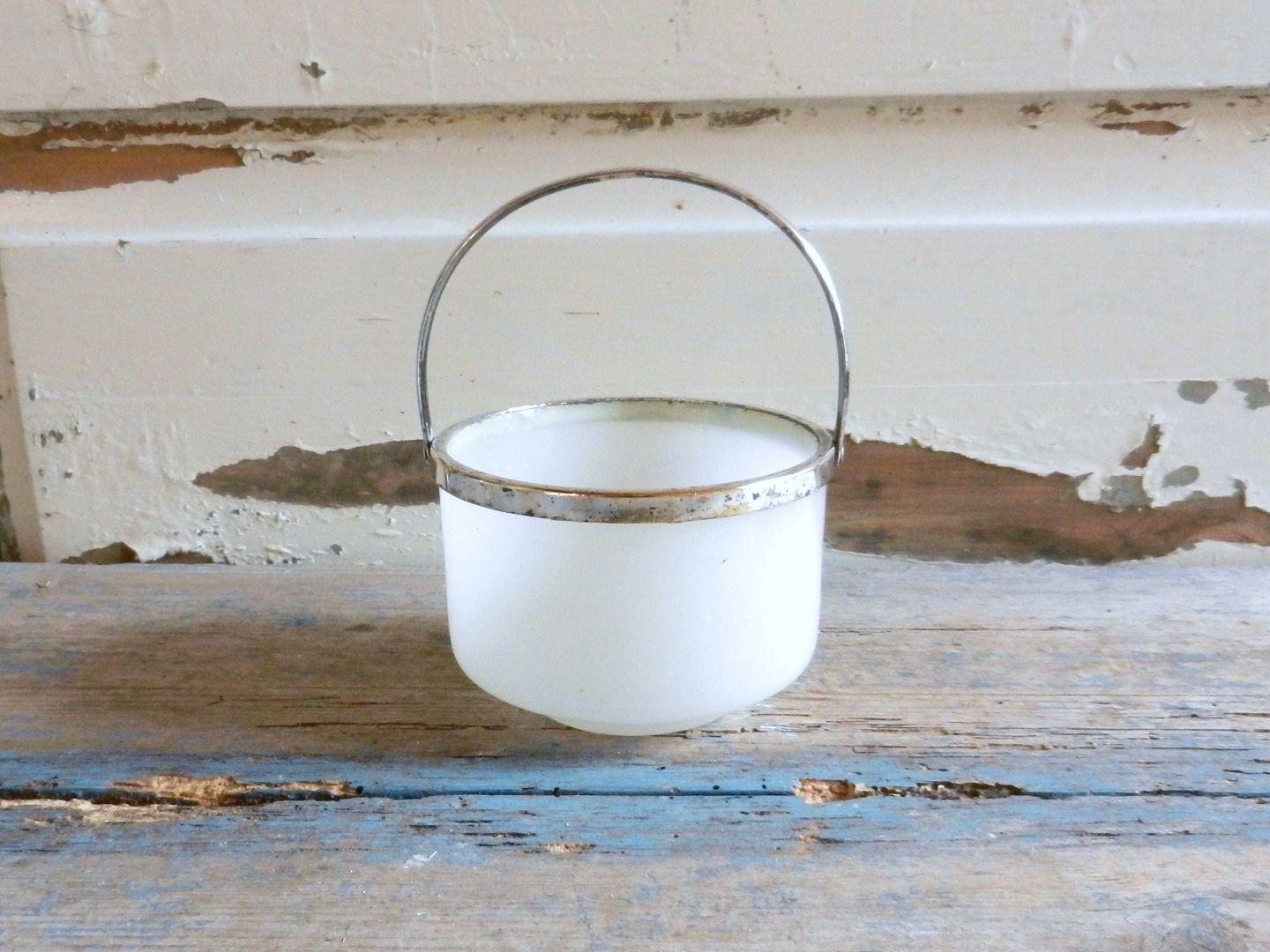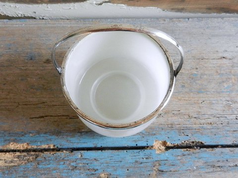 1800tals sukkerskål af hvid opalineglas med forsølvet hank.