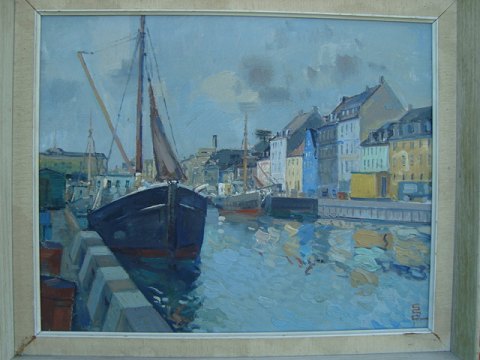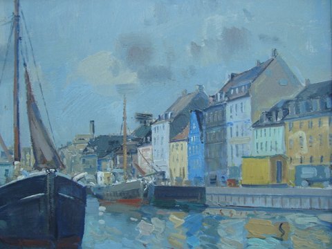 Maleri - Svend Sinding Christensen - "Kanalparti fra København"