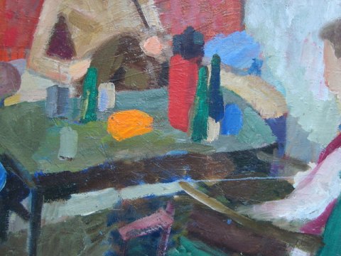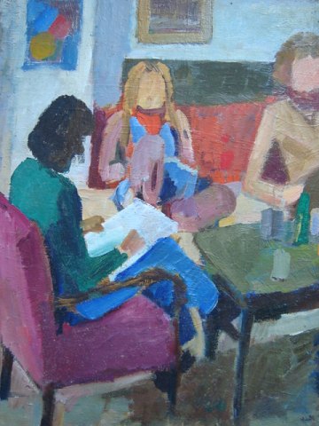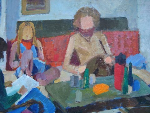 Maleri af Jon Gislason 1978 - Familiehygge i dagligstuen.