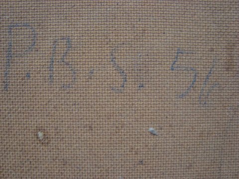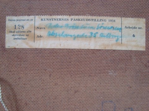 Bagpå mærkat fra Kunstnernes Påskeudstilling 1956 - No. 6.
